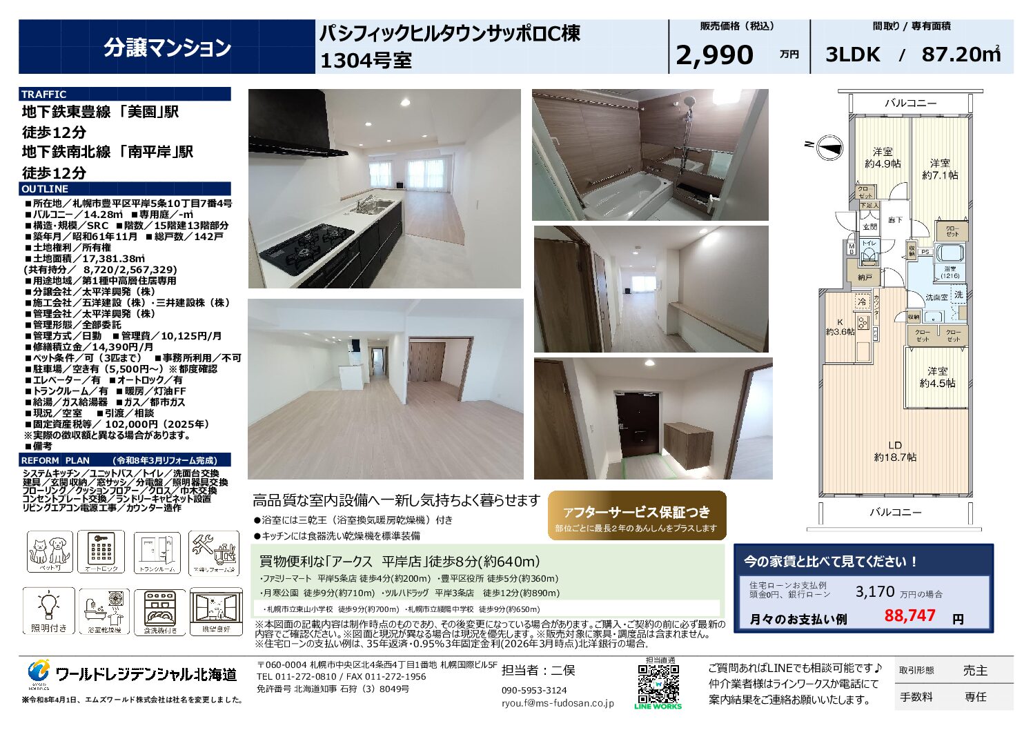 札幌市豊平区日平岸5条10丁目7番4号1304号室