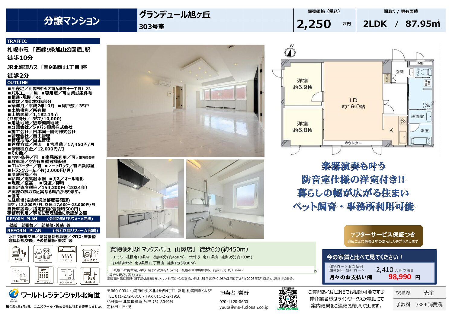 札幌市電「西線9条旭山公園通」駅 徒歩7分 / JR北海道バス「南9条西11丁目」停 徒歩2分